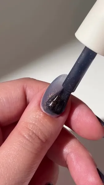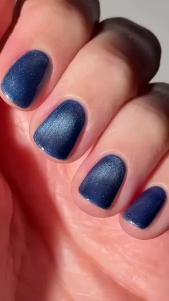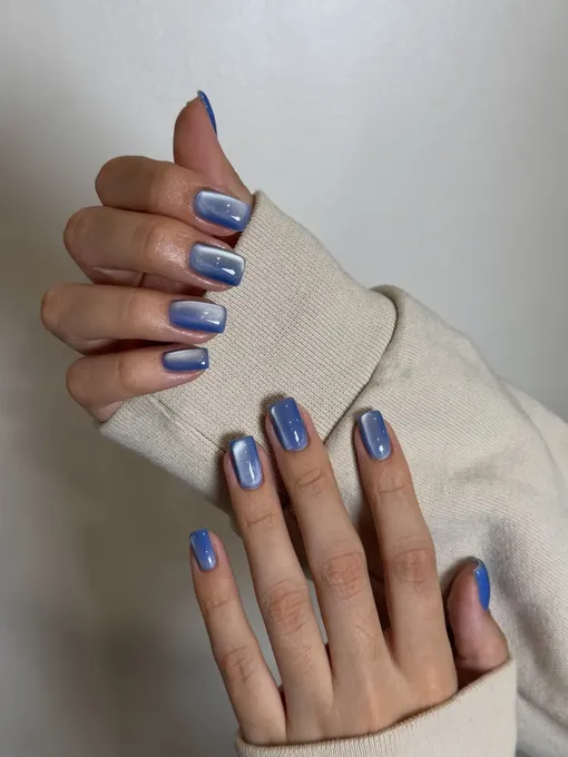 Хорошая новость: чтобы передать текстуру любимых джинсов, не нужно быть профи в дизайне ногтей. Добиться визуального эффекта той самой плотной «ткани» поможет одна из самых доступных техник — «кошачий» глаз. С правильными оттенками синего даже самый простой домашний маникюр будет соответствовать уровню стиля любимых винтажных джинсов.