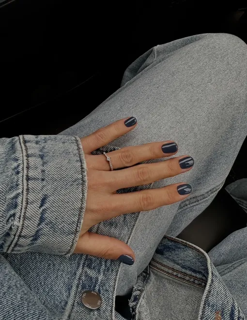 Ищешь самый легкий способ повторить «джинсовый» маникюр? Тогда выбирай грифельно-синий цвет и покрывай им ногти в один тон.