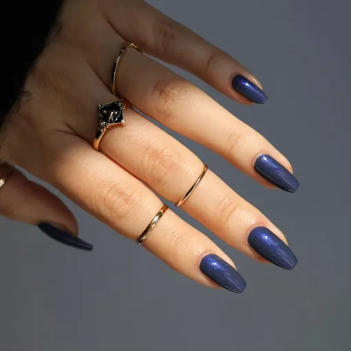 Любишь приглушенный деним? Тогда покрой ногти в глубоком синем оттенке стильным матовым финишем.