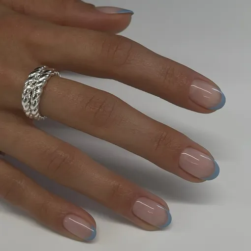 Этот микрофренч в небесно-голубом оттенке идеально подойдет для создания свежего и минималистичного образа на весну.