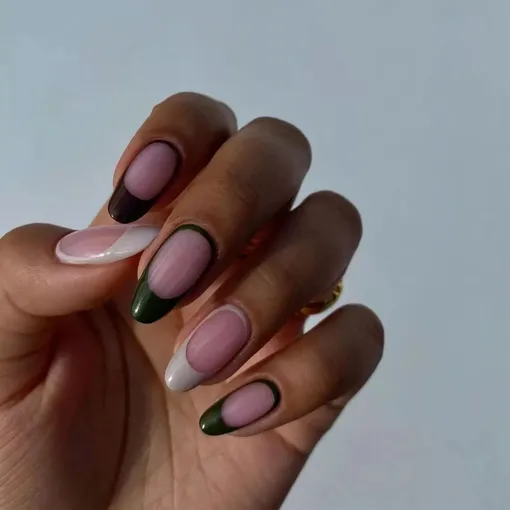 Один ноготь может быть подчеркнут зеленым оттенком, другой — шоколадным, а следующий — молочным. Тут все зависит от твоей фантазии. Пожалуй, этот дизайн может считаться одним из самых ярких представителей этого бьюти-тренда.