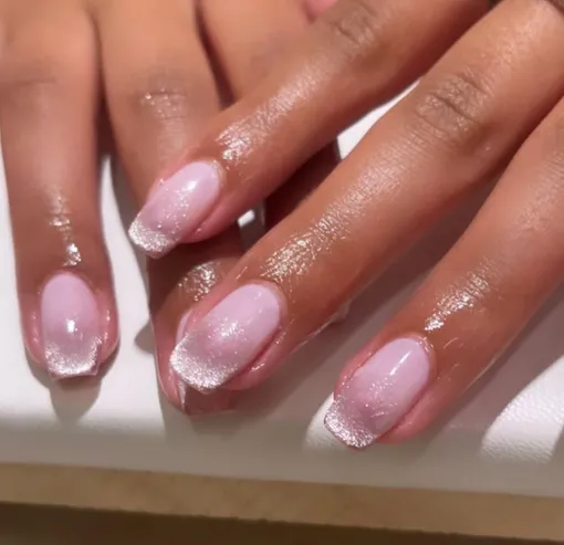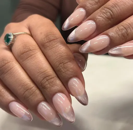 Такой маникюр требует уверенной руки, и мастера подходят к нему по-разному. Неил-мастер Мелани Грейвс наносит серебристый лак на весь ноготь, затем размещает магнит по бокам, чтобы собрать частицы в отражающий центр. До полимеризации она подносит более длинный магнит к середине ногтя и направляет пигмент к кончику, создавая зону «негатива». В итоге получается френч, заметный лишь под определенным углом.
