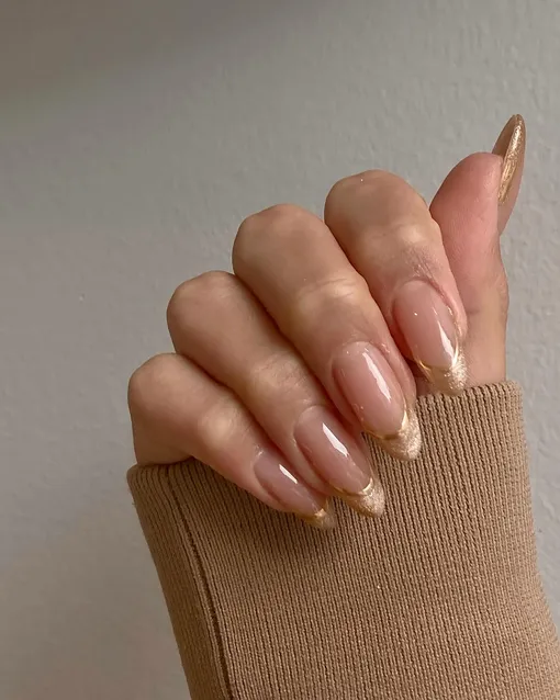 Сдержанная золотистая «улыбка» френча с тонкой металлической линией снизу создает простой и элегантный образ с утонченными деталями.