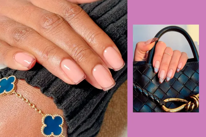 Не готова отказываться от темных оттенков лака даже весной? Тогда укрась им только кончики, добавь на них гипнотического блеска, а саму основу сделай максимально натуральной и полупрозрачной.
