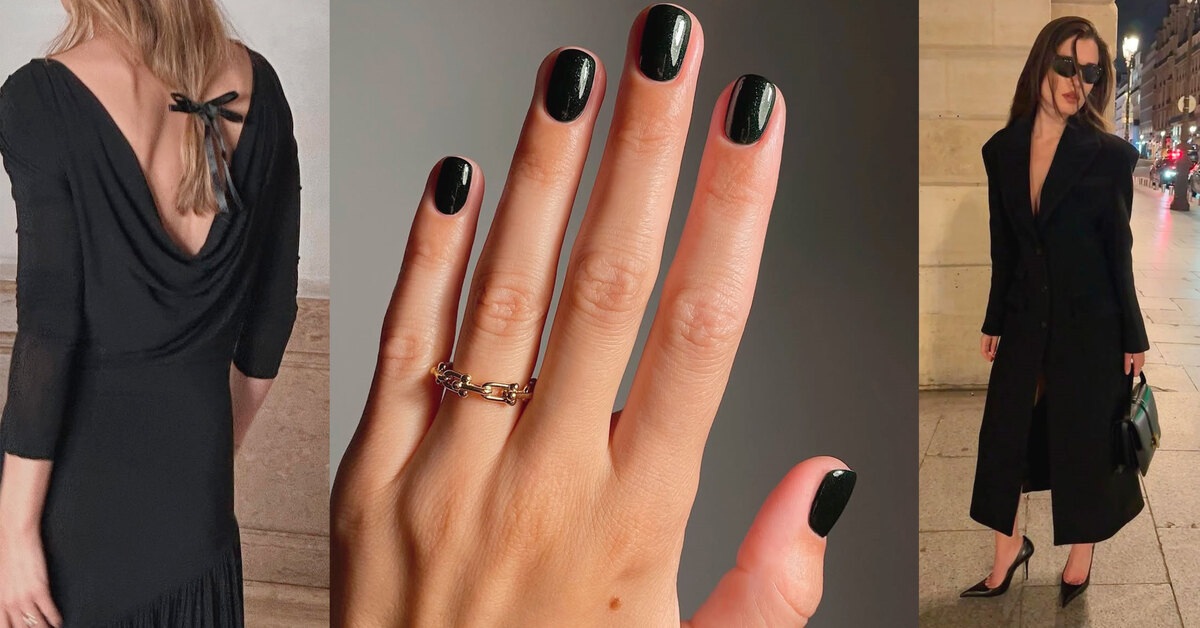 Мы давно перестали считать черный лак исключительно «готическим», поэтому было бы преступлением обойти стороной эту вечную классику в нашей подборке. Этот оттенок — квинтессенция элегантности, дерзости и лаконичности. И если в этом году у тебя нет настроения на традиционные красный, зеленый, синий и блестки, ты не Гринч, а просто выбираешь свой идеальный черный!