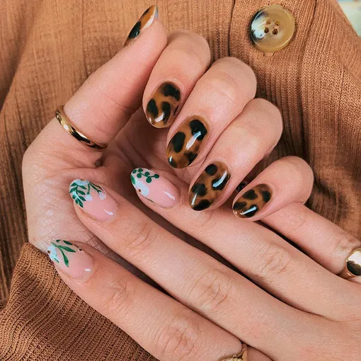 Принты набирают обороты! В 2019 году мы все дружно носили «черепаховый» маникюр под популярную заколку для волос, «розовый кварц», «огненный». Для фанатов минимализма были пастельные матовые варианты, а также дизайн с крапинками.