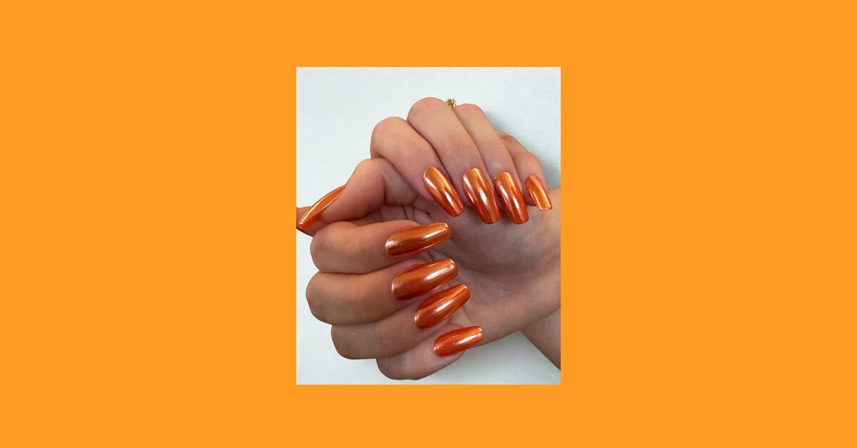 «Мне нравится этот смелый и в то же время простой образ, — говорит известный нейл-дизайнер и преподаватель мастерства маникюра Присцилла Нгуен. — Оранжевый сам по себе выразителен, он придает образу теплоту. Хром сверху добавляет цвету особый шарм, не затмевая его».