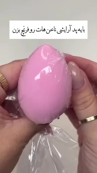- Возьми в руки спонж и оберни его небольшим кусочком пищевой пленки так, чтобы она плотно прилегала к «яйцу».