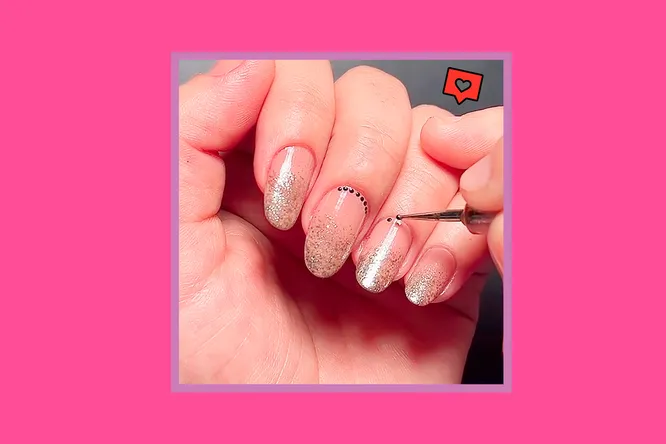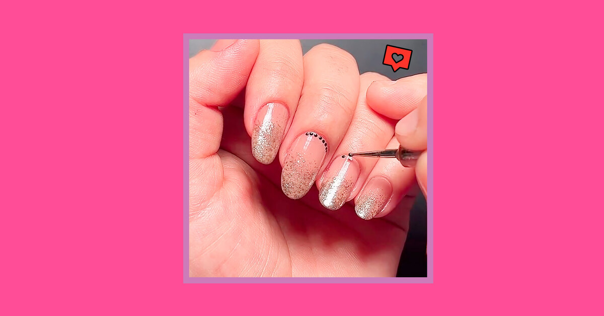 - Можешь дополнительно украсить область кутикулы крошечными точками. Расставь их с помощью дотса, тонкой кисти или обычной зубочистки, смоченными в нужном оттенке лака.