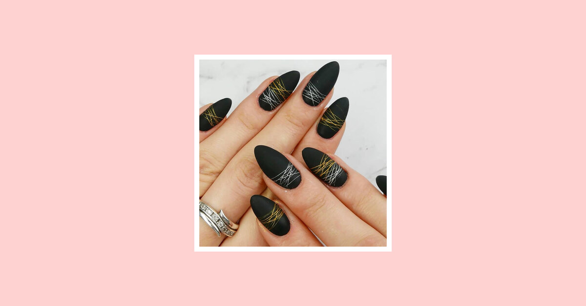 Гель-паутинка будет особенно интересно смотреться в золотом и серебристом цветах. Лучшей подложкой для такого украшения станет черное матовое покрытие, которое будет выгодно оттенять блеск элементов.