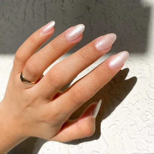 Стандартные нейл-идеи для проницательных невест к 14 февраля сводятся к нежному и пастельному маникюру в однотонном варианте или с легким шиммером на финише. Главная прелесть такого маникюра — в его гармоничном сочетании с одеждой, украшениями и другими деталями образа. Нежный однотонный лак на ногтях не будет перетягивать на себя внимание с кольца — ни в реальной жизни, ни на фотографиях для соцсетей.