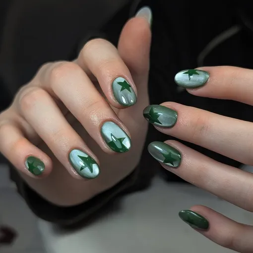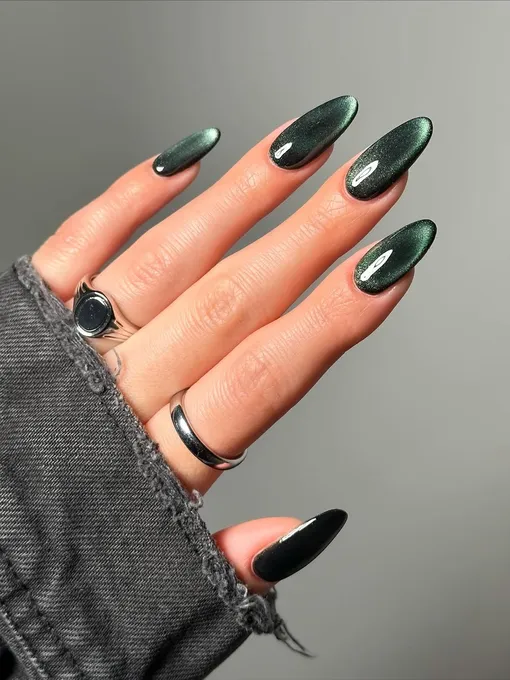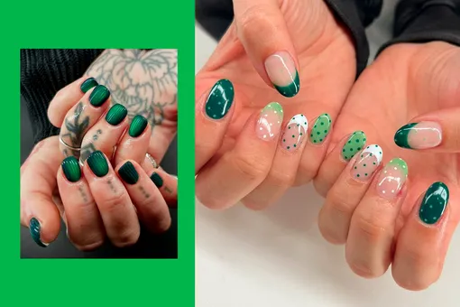 Теперь зеленый перекочевал с одежды на наши ногти. Если ты не готова к полностью зеленому образу, яркий акцент на кончиках пальцев — лучший способ добавить индивидуальности. Вариантов масса: от изумрудного до мятного, от темного лесного до нежного шалфея. Выбирай тот, который откликается именно тебе.