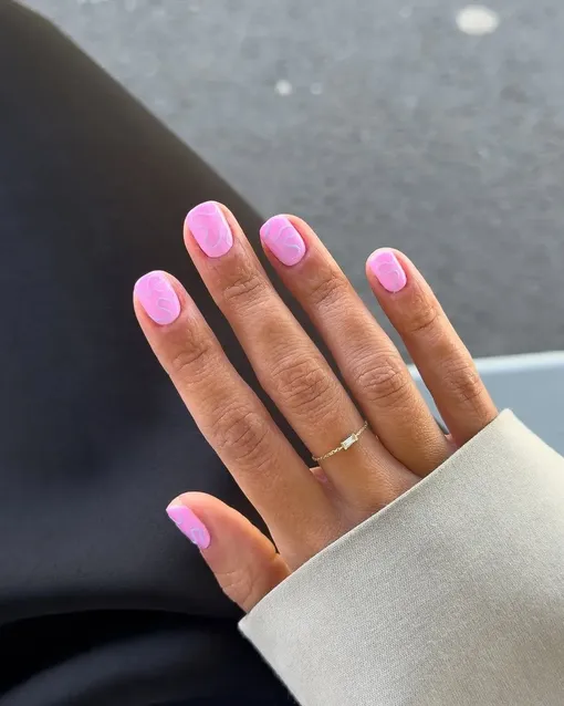 Розовые ногти созданы, чтобы добавить весеннему маникюру сочный акцент. Кстати, они отлично смотрятся на коротких округлых ногтях, да еще и с глянцевым топом. Оттенок, который точно стоит попробовать в первую очередь, — яркий, веселый розовый, похожий на жвачку, идеальный для любого тона кожи.