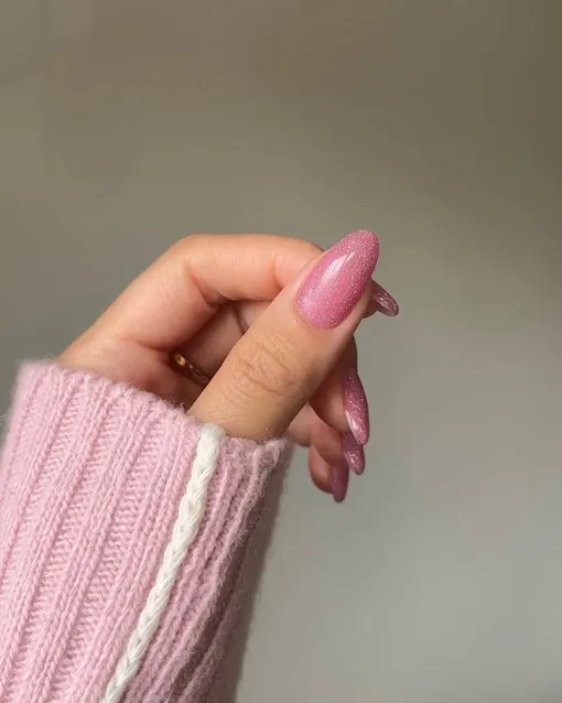 Хочешь сиять? Тогда обязательно попробуй розовый лак с блестками. Он идеально ловит свет и подчеркивает красоту цвета. Его можно использовать для однотонного покрытия или только для акцентных ногтей — как подскажет вдохновение и сердце!
