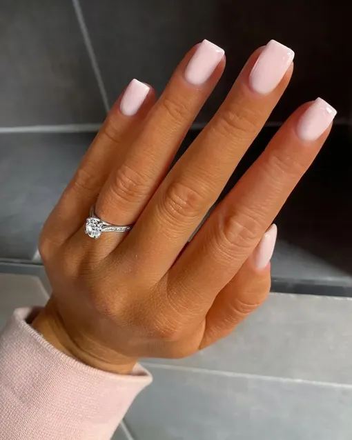 Такой маникюр может стать твоим достойным сопровождением на любой церемонии, мероприятии или романтической встрече. Это молочно-розовый лак будто передает прохладу клубничного молочного коктейля с капелькой сливок. Идеальный вариант, чтобы рассматривать его даже для свадьбы.