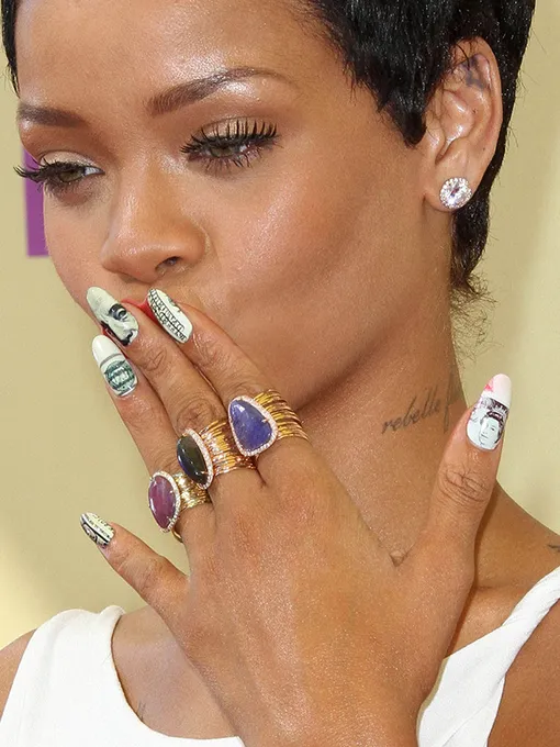 Креативная Рианна приклеила к длиннющим ногтям кусочки долларовых купюр — что бы никто-никто не сомневался в финансовом благополучии певицы!