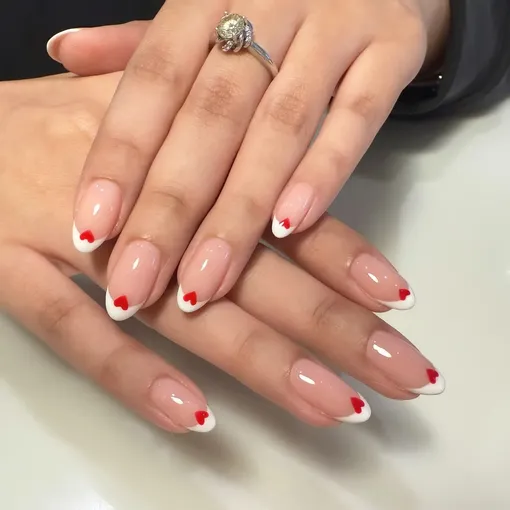 Не хочешь делать кончики полностью красными? Тогда усовершенствуй базовый френч рисунками маленьких сердечек, которые станут ненавязчивым, но очень милым акцентом.