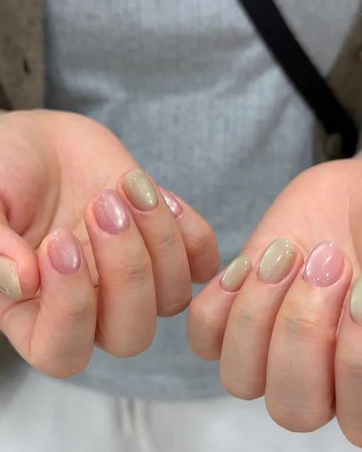 Что может быть ближе к матче, чем маникюр в виде стаканчика для этого напитка? Ну, почти. Этот дизайн сделан с помощью лака «кошачий глаз», нанесенного поверх пастельно-зеленой базы — получается точь-в-точь как чашка ароматного напитка, только на твоих ногтях.