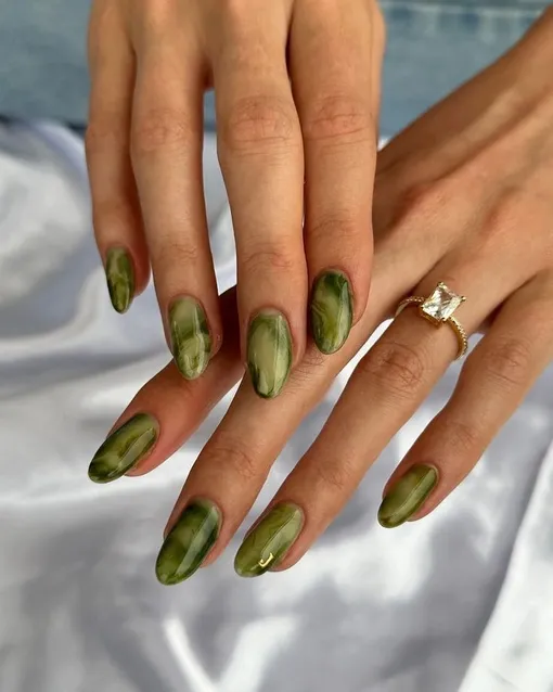 И да, до ногтей он тоже добрался. Ну а что, если что-то становится твоим любимым цветом, почему бы не носить его еще и на руках? Я собрала семь оригинальных идей маникюра с матчей — сохраняй их для следующего визита к мастеру!