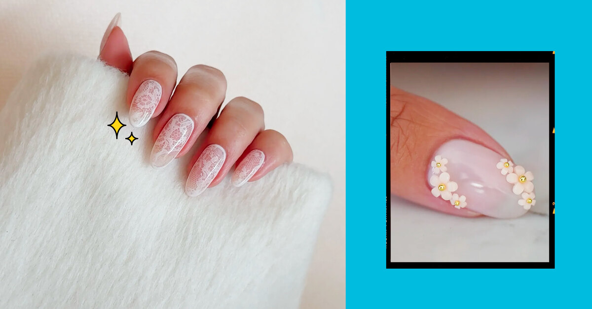 Кружево, цветы и бриллианты: 5 самых женственных идей маникюра на февраль в молочном цвете
