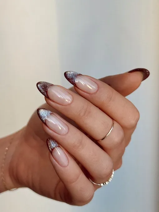 Наверняка, при слове втирка тебе на ум первыми придут вирусные «глазированные пончики» Хейли Бибер. Однако эта зима предлагает нам и более сдержанные вариации хромированных ногтей в комбинации с френчем. Вот одна из них!
