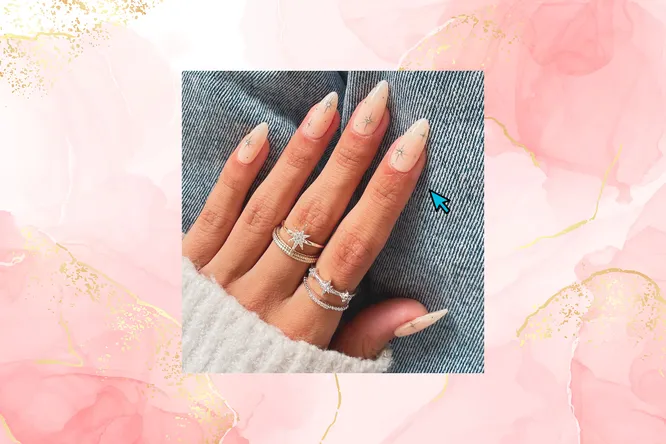 Нюдовая база здесь украшена миниатюрными серебристыми звездами, которые словно мерцают на кончиках ногтей. Этот вариант уместен для вечерней свадьбы или торжества в турецком стиле. Маникюр выглядит изысканно, но при этом современно, он добавляет легкого блеска и подчеркивает ювелирные украшения на руках. Такой дизайн оценят любительницы неброского, но эффектного акцента.