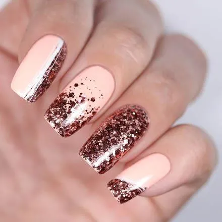 Металлический декор не выходит из моды уже несколько сезонов, поэтому украсить ногти можно с помощью красивого геля с глиттером. Его можно нанести на всю ногтевую пластину или использовать материал для прорисовки отдельных элементов. Серебристый блеск позволит создать очень стильный маникюр, который подойдет для новогодних праздников, поднимая настроение даже спустя много дней!