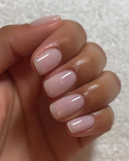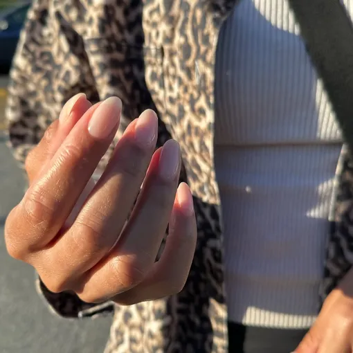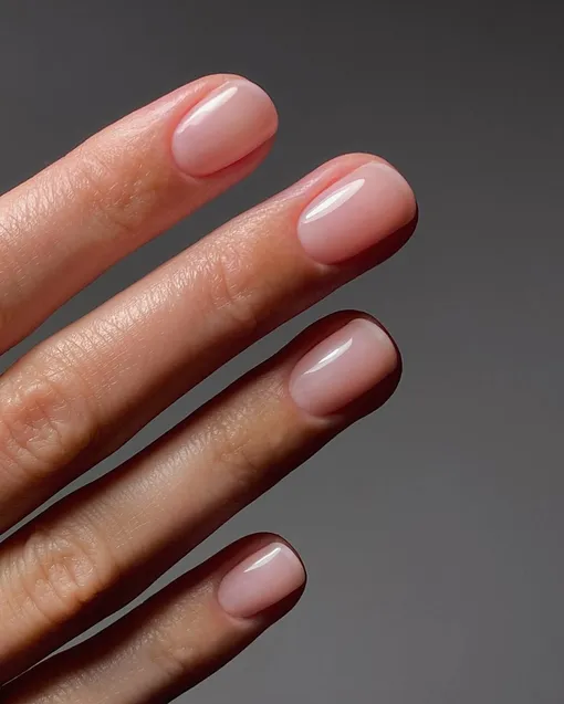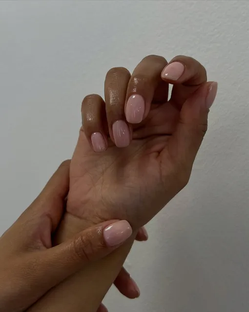 Лучше всего «маникюр без маникюра» смотрится на плавных формах ногтей: на овале или мягком квадрате. Завершающий штрих — глянцевый топ, который придаст ногтям идеальный блеск.