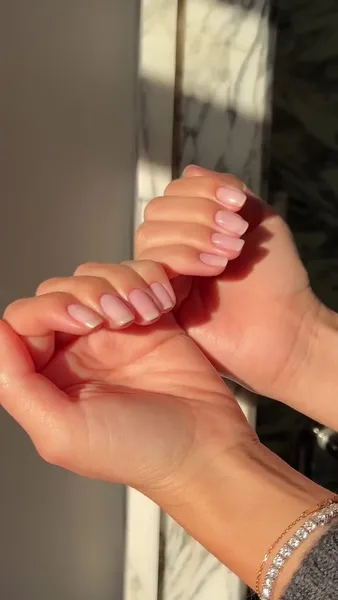 Перед нанесением покрытия нужно хорошо очистить руки и ногти, чтобы лак ложился максимально ровно. Главное — укладывай покрытие тонкими слоями, избегая слишком плотных текстур. Идеальные оттенки для этого маникюра — полупрозрачные кремовые, мягкие нюдовые и нежно-розовые.