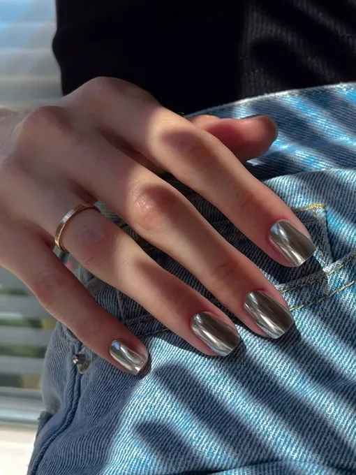 Металлическое серебро на короткой длине смотрится очень стильно. Хром смотрится футуристично, но благодаря аккуратной форме остается носибельным даже в повседневной жизни.