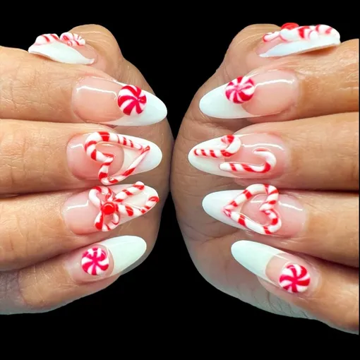 Собери на ногтях все новогодние сладости, объединив карамельные трости с забавными имбирными человечками. Этот дизайн без слов расскажет о твоей способности создать атмосферу праздничного уюта.