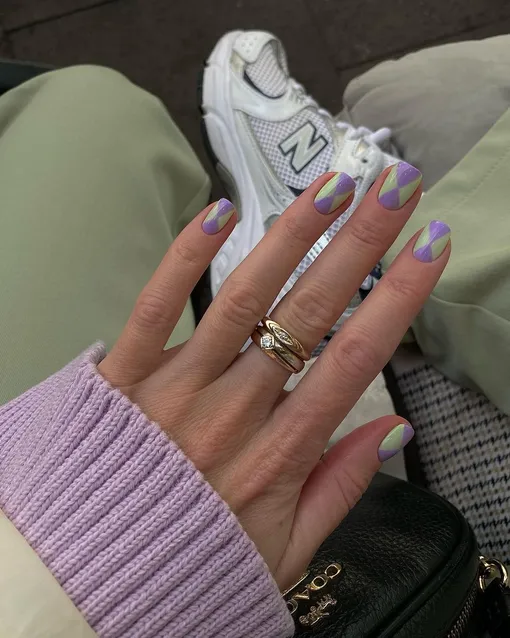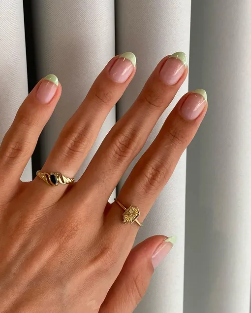 Вариантов дизайна в оттенке матча не счесть — все зависит от фантазий тебя и твоего мастера! Можешь покрыть кремовой зеленью ногти в один тон, окрасить ей только кончики, сделать обмре, либо сочетать ее с другими цветами лаков. Обрати внимание на нежно-розовый, лавандовый и золотой — эти оттенки лучше всего «подружатся» с матчей в одном маникюре.