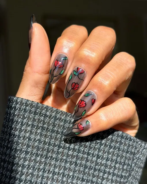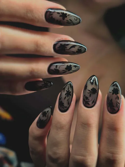 Ногти-витраж: 4 модные идеи готического маникюра с цветами