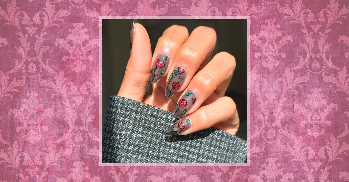 Ногти-витраж: 4 модные идеи готического маникюра с цветами