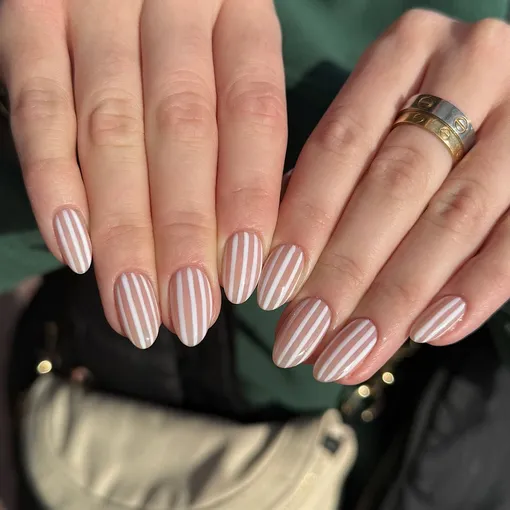 Такое направление линий выгодно работает и в фэшн, так что почему бы не опробовать эту историю в маникюре? Идея заключается в том, что тонкие вертикальные полоски от основания до кончика визуально удлиняют ногти, даже если у тебя не очень длинные ногти.