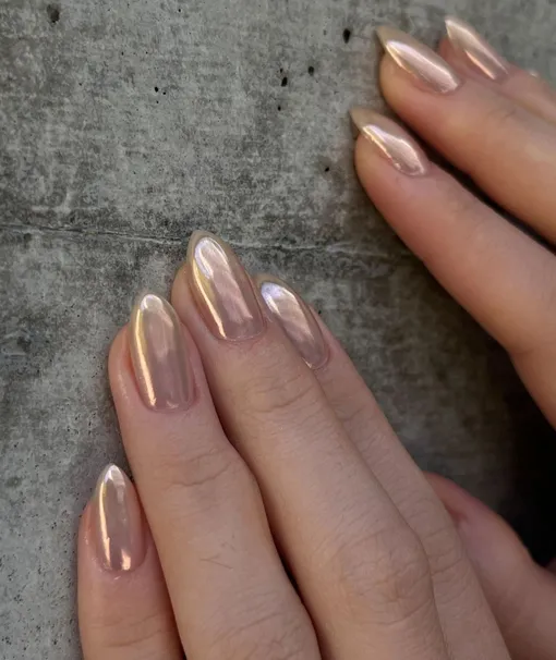 Блестящий финиш для идеального маникюра! Даже на коротких ногтях блеск хрома отражает свет самым лучшим образом и визуально удлиняет ногти. Кроме того, в арсенале нейл-мастеров много разных цветов и финишей, с которыми можно экспериментировать. Не бойся своей фантазии!