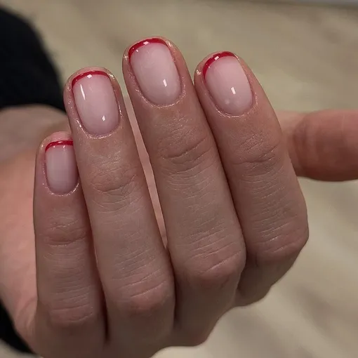 Иногда для праздничного настроения достаточно просто французского маникюра с новогодним акцентом. Вот тебе идея на заметку: молочно-нюдовая основа идеально оттенит сочный клюквенно-красный цвет кончиков.
