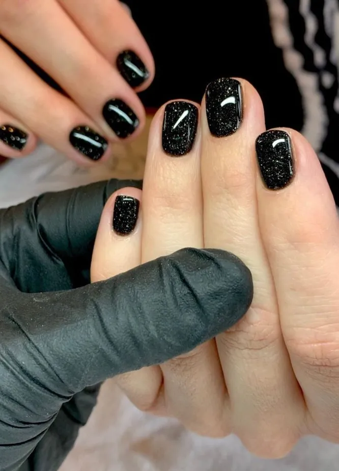 Если ты еще не наигралась с блеском во время подготовки к праздникам, то можешь закрыть этот гештальт в январе. Активные элементы дизайна тут будут лишними, а вот мелкий шиммер — в самый раз! Сочетай его с черным глянцем, чтобы создать на ногтях имитацию звездного неба.