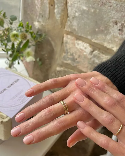 Идеальный вариант маникюра для девушек, одержимых стилем тихой роскоши. В этом дизайне нет ничего лишнего: только нейтральный оттенок и «дорогой» блеск.