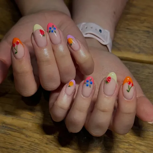 Такой фруктовый маникюр поднимает настроение с первого взгляда, а каждый жест с ним становится чуточку веселее.