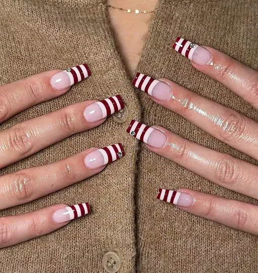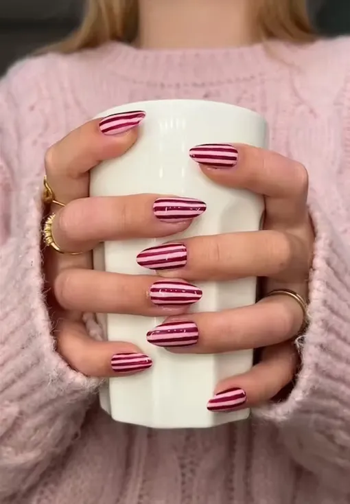 Пижама, леденцы и мохеровый свитер: 15 стильных идей маникюра с трендовыми полосками