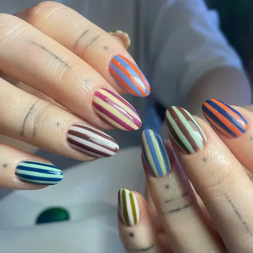 Даже самые яркие и активные полоски удивительно гармонично сочетаются с любым образом, добавляя выразительности даже самому нейтральному нейл-дизайну. Листай дальше, чтобы вдохновиться и найти референс для своего следующего идеального маникюра!