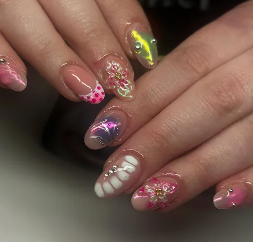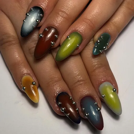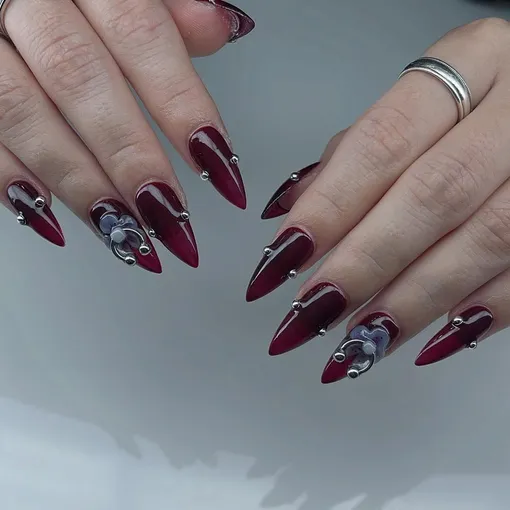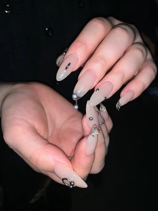 Встречай самый дерзкий вариант в нашей подборке! Комбинируй декоративные украшения с настоящим пирсингом для ногтей (но будь осторожна и доверяй только проверенным мастерам!). Такой дизайн идеально подойдет для тех, кто не боится быть в центре внимания и обожает эксперименты.