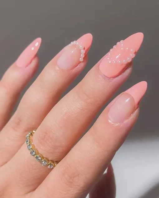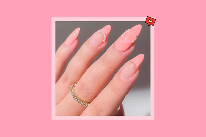 Этот дизайн выглядит очень нежным и аккуратным, несмотря на объемность декора. Фанаткам Барби и Глинды из «Злой» данный маникюр точно западет в душу.