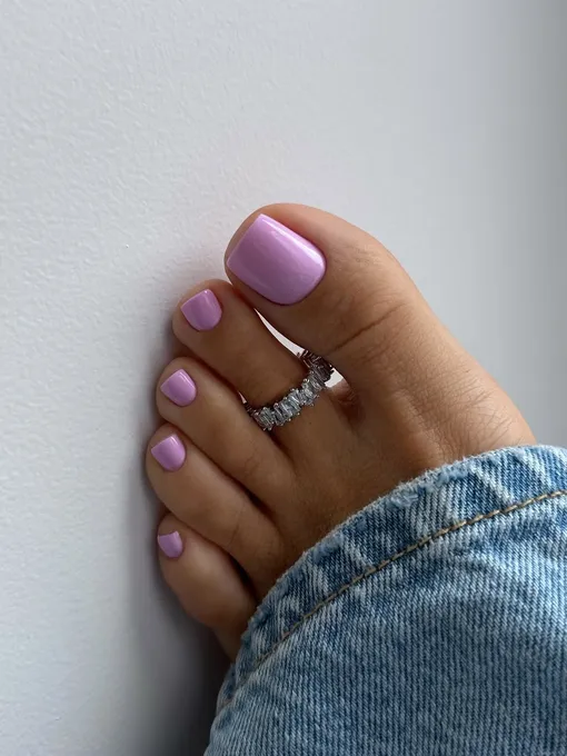 Холодный сиреневый цвет будто создан для бархатного сезона. Пока погода позволяет носить открытые босоножки, этот оттенок будет выглядеть мягко и стильно, особенно в паре с серебряными аксессуарами.