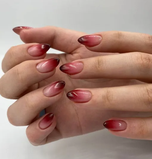 Прелесть коктейльного маникюра в том, что он легко подстраивается под любой вкус. Если твой выбор — «Кровавая Мэри», присмотрись к этому варианту. Полупрозрачный красный оттенок с эффектом томатного сока выглядит лаконично и универсально, а также подходит для любой формы и длины ногтей.