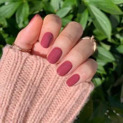 В отличие от прозрачных «фруктовых» ногтей или нежных «принцесс», этот оттенок плотный, насыщенный и в то же время универсальный. Он не требует декора, главное — идеально обработанные ногти и аккуратное покрытие. Такой маникюр легко повторить, а короткая округлая форма, как у Селены, только добавит трендовости и изящества.