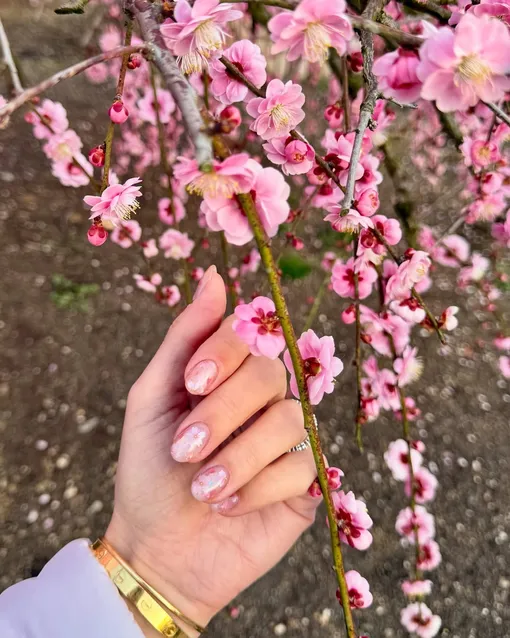 Маникюр с цветками сакуры был на пике популярности еще в 2024 году, когда его себе сделала одна из главных законодательниц нейл-трендов Хейли Бибер. Тогда модницы по всему миру буквально завалили соцсети своими версиями этого цветочного дизайна, а спрос на него в салонах красоты возрос в разы.