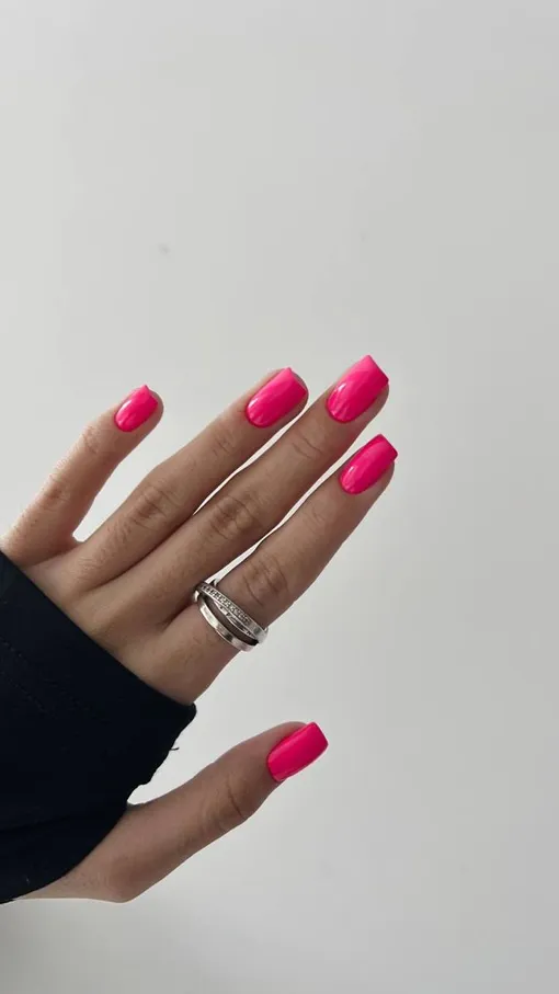 Лето — время смелых решений, и неоновый розовый лак — выбор тех, кто не боится быть в центре внимания. Такой маникюр мгновенно поднимает настроение, делает образ дерзким и энергичным. Ярко-розовый отлично сочетается с загаром, белой одеждой и аксессуарами в стиле 90-х, которые сегодня снова на пике популярности. Этот оттенок часто выбирают молодые девушки и все, кто хочет добавить в свою жизнь немного драйва.