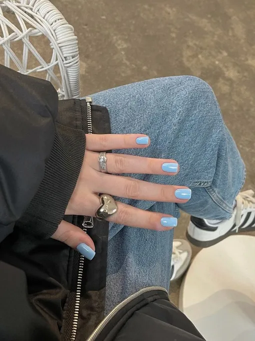 Голубой лак — еще один мастхэв этого лета. Он напоминает о морских волнах, ясном небе и долгожданном отпуске. Голубой оттенок отлично сочетается с белыми и серебристыми деталями, подходит для создания как повседневного, так и праздничного маникюра. Этот цвет выбирают девушки, которые любят мечтать, ценят свободу и легкость. Голубой лак — это выбор для тех, кто хочет добавить в свой образ немного прохлады и свежести.